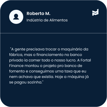 A Fortal Finance simplifica tudo para você. Analisamos seu momento, encontramos a oportunidade, montamos o projeto e, no final, sua empresa pega uma fatia do crédito mais barato do mercado.